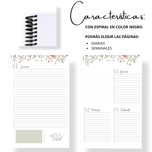 Una agenda que transmite calma, fuerza y renovación, y que te guía a lo largo del año para que tus días fluyan, tus ideas brillen y tus sueños tomen forma.